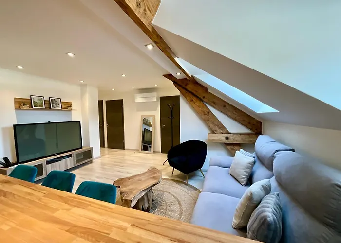 Situado a unos 5 minutos a pie del Eglise Saint-Barthélémy, Appart De Robert, Nid De Luxe Au Centre-Ville Gérardmer, un apartamento de 90 m^2, ofrece la oportunidad de descubrir varias atracciones turísticas de la zona.
